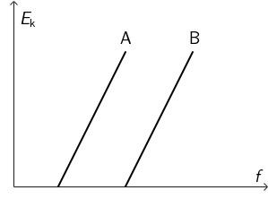 Na metal A pada zračenje frekvencije: $$f > f_\text{g,A}$$ Fotoefekt se opaža i kinetička energija fotoelektrona se povećava: $$E_\text{k} > 0$$