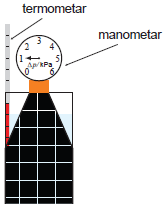 na kuhalu. Temperaturu vode mjeri termometrom, a na otvoru tikvice nalazi se manometar koji