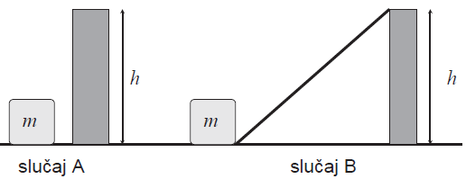 Na slici su prikazana dva slučaja kako se teret mase $m$ podići na zid visine $h$. U slučaju A teret se podiže