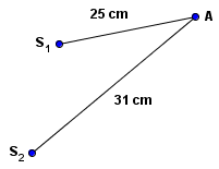 Kako će se gibati voda u točki A koja je od izvora S1 i S2 udaljena kao što je prikazano na crtežu?